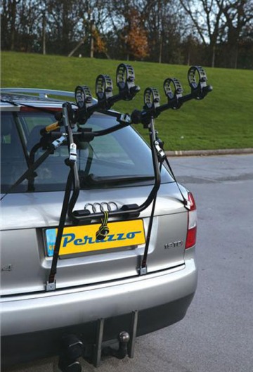 Велокрепление на заднюю дверь PERUZZO New Hi-Bike — универсальный багажник для перевозки 3-х велосипедов с закрытой рамой, который крепится при помощи ремней к задней двери автомобиля. Если же вам требуется перевезти велосипед с открытой рамой, то необходимо использовать адаптер PERUZZO PZ 395. Велосипеды фиксируются к автомобилю за раму при помощи специальных ремней безопасности.
