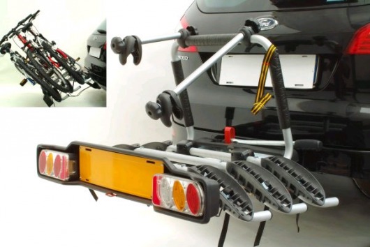 Велосипедное крепление порадует Вас легким монтажом и демонтажем посредством специального рычага. Велосипедный багажник оснащен держателями для фиксации рам велосипедов, повторителями задних фонарей и дополнительным номерным знаком. Крепление отодвигается и при этом освобождает доступ к багажнику. Эта существенная особенность позволяет избежать дискомфорта при транспортировке велосипедов.