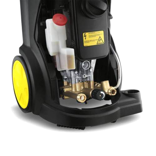 В комплект поставки данной модели входит десятиметровый шланг высокого давления, изготовленный из износостойкого каучука со стальным армированием, что гарантирует надежную защиту от перегибов, а значит и от переломов шланга. В основе этого аппарата 3-хпоршневой осевой насос, который выполнен из особой высоколегированной латуни, а так же мощный асинхронный двигатель воздушного охлаждения.