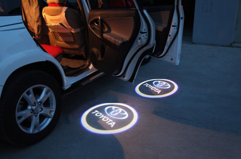Подсветка с логотипом TOYOTA - новый нестандартный вариант тюнинга! В дверь авто устанавливается миниатюрный проектор, который выводит на асфальт четкое цветное изображение логотипа TOYOTA. Картинка появляется, когда вы открываете дверь, и исчезает, когда дверь закрывается. Выглядит это очень стильно и необычно.