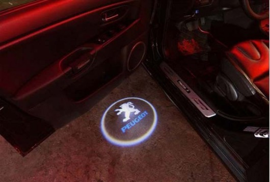 Подсветка с логотипом Peugeot - новый нестандартный вариант тюнинга! В дверь авто устанавливается миниатюрный проектор, который выводит на асфальт четкое цветное изображение логотипа Peugeot. Картинка появляется, когда вы открываете дверь, и исчезает, когда дверь закрывается. Выглядит это очень стильно и необычно.
