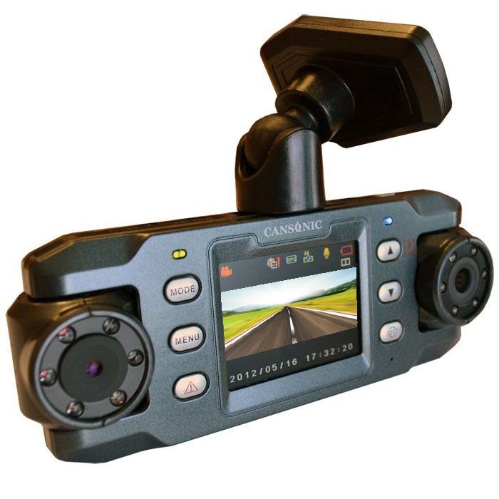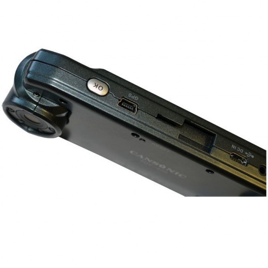 Особенность нового видеорегистратора Cansonis FDV-606 — это две вращающиеся на 180 градусов видеокамеры. Левую камеру Вы сможете применять как своеобразный телескоп. То есть видео, которое она снимает, приближено на двадцать метров. Причем картинка при этом не теряет четкости, и Вы без проблем рассмотрите встречающиеся дорожные знаки или номера других автомобилей.