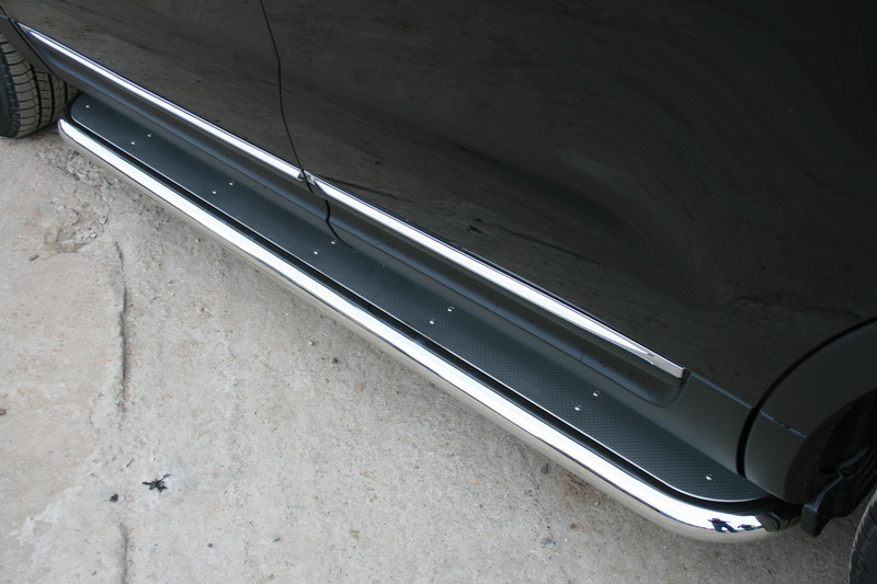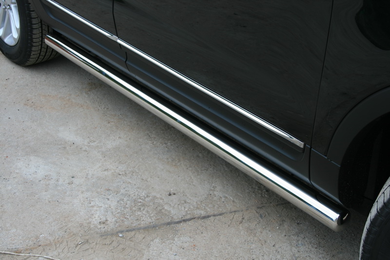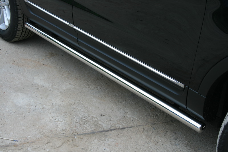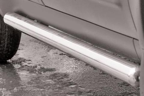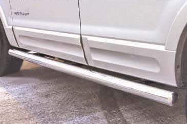 Боковые пороги на Ford Maverick, Mazda Tribute из нержавеющей стали диаметром 60 мм не боятся коррозии, сколов и царапин и выдерживают большие нагрузки. Боковые подножки-пороги трубой сделаны специально для автомобилей Ford Maverick от 2001 г.в. и Mazda Tribute от 2001, 2005 г.в., легко устанавливаются и стильно смотрятся. В комплекте вы получите 2 подножки.
