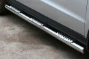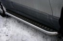Боковые пороги на Hyundai Santa Fe из нержавеющей стали диаметром 76 мм не боятся коррозии, сколов и царапин и выдерживают большие нагрузки. Боковые подножки-пороги трубой с декоративными элементами сделаны специально для автомобилей Hyundai Santa Fe 2010-2012 г.в., легко устанавливаются и стильно смотрятся. В комплекте вы получите 2 подножки.