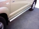 Боковые пороги на Hyundai Tucson из нержавеющей стали диаметром 60 мм не боятся коррозии, сколов и царапин и выдерживают большие нагрузки. Боковые подножки-пороги с листом сделаны специально для автомобилей Hyundai Tucson от 2004 г.в., легко устанавливаются и стильно смотрятся. В комплекте вы получите 1 левый порог.