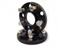 Шпилечные проставки толщиной 15-50 мм отличаются особым типом крепления. Сама проставка крепится на штатные шпильки при помощи гаек (идут в комплекте с проставками), а диск фиксируется на шпильках проставки при помощи штатных гаек. Такой вариант крепежа упрощает установку проставок на автомобили, колеса которых крепятся гайками (в этом случае заменять штатные шпильки удлиненными вам не понадобится).