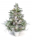 Искусственная новогодняя елка в серебристом горшочке «Искристая фантазия» станет замечательным украшением праздничного интерьера. Она представляет собой оригинальную композицию высотой в 0,91 м из белой искусственной елки, зеленых листочков и настоящих еловых шишек. Материал: леска.